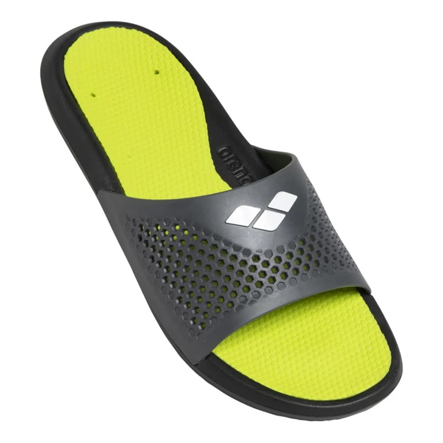 Die Arena Bruno Badesandalen haben ein leichtes und bequemes Design und sind sowohl für den Pool als auch für den Strand geeignet. Das Wasserableitungssystem mit Löchern und Wabenmuster im Obermaterial lässt überschüssiges Wasser abfließen und sorgt für trockene Füße und einen rutschfeste Passform im Schuh. Das einzigartige Sohlendesign bietet zusätzlichen Komfort und sicheren Halt auf trockenen und nassen Oberflächen.